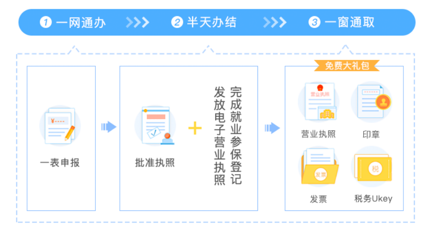 苦求东谈主通过“一网通办”平台电脑PC端粗略微信小智商,可一次性办理OPC企业开办所波及的交易牌照、刻制钤记、申领发票、处事和参保登记、住房公积金缴存登记、银行预设账号开户或预约银行开户等业务,只需登录一个平台、进行一次认证、一表填报即可一步办结。