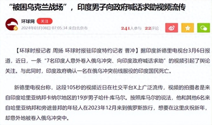 2024年的时刻,我也曾手脚环球时报在印度的特约记者,报谈过多起关联新闻:疏忽20名印度东谈主在俄罗斯务工或者旅游时,被俄罗斯戎行带到俄乌战场担任后勤和支持东谈主员。