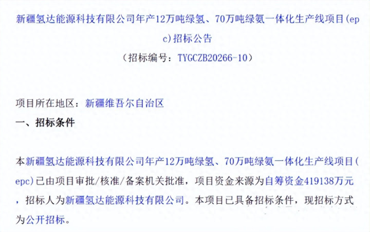 3月2日,新疆氢达动力科技有限公司年产12万吨绿氢、70万吨绿氨一体化坐蓐线形状EPC招标: