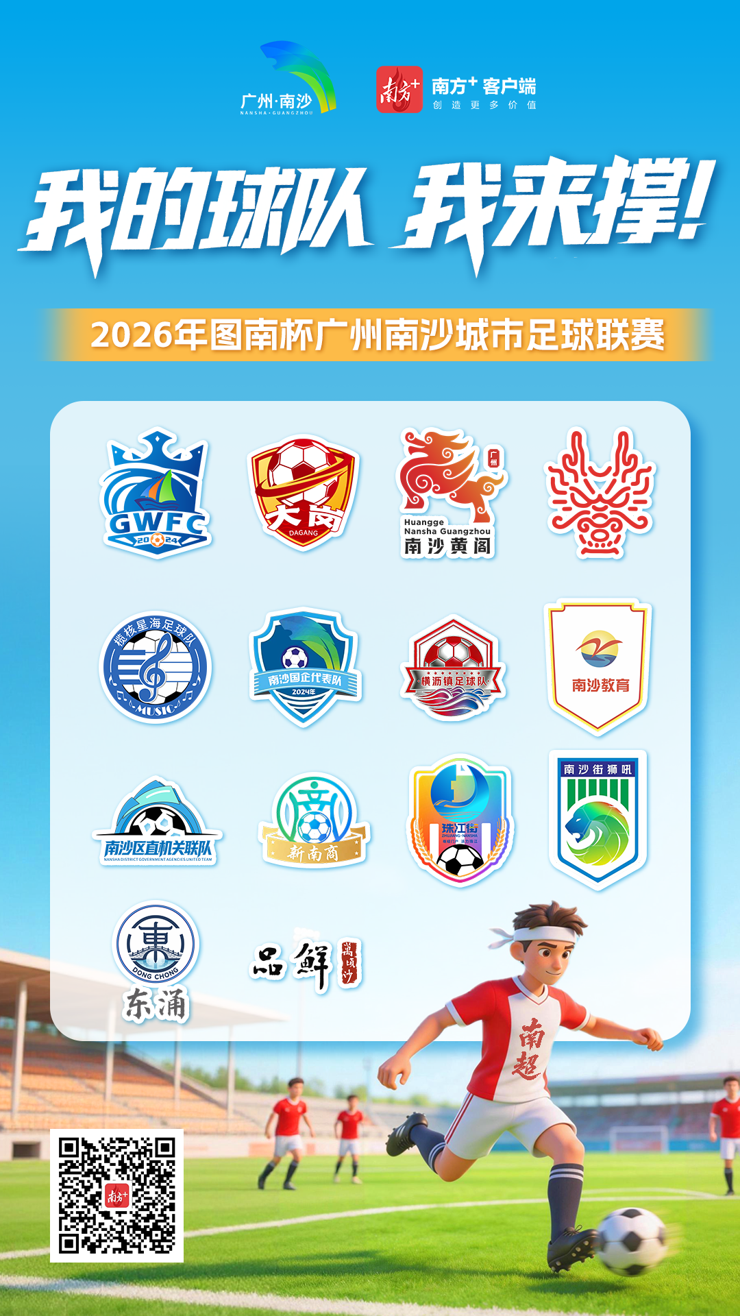 4月10日,2026年“图南杯”广州南沙城市足球联赛(简称“南超”)开赛前一日,14支参赛球队队徽肃肃聚会发布。一枚枚悉心联想的队徽,将南沙各镇街东说念主文性情、地域风貌与足球竞技精神形影相随,成为城市足球文化的水灵柬帖,以明白视觉谈话展现南沙草根足球的繁茂活力与城市体育的无穷魔力。