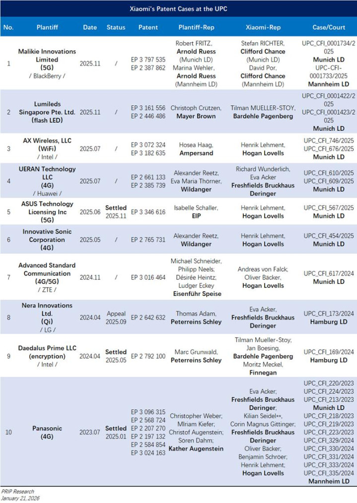 本年1月,欧洲调处专利法院(UPC)公布了小米在该法院遭受到的第十个专利维权者——Malikie Innovations Limited。这是一家专利运营公司,收购了黑莓公司上万件专利,并试图将这些专利进行货币化。
