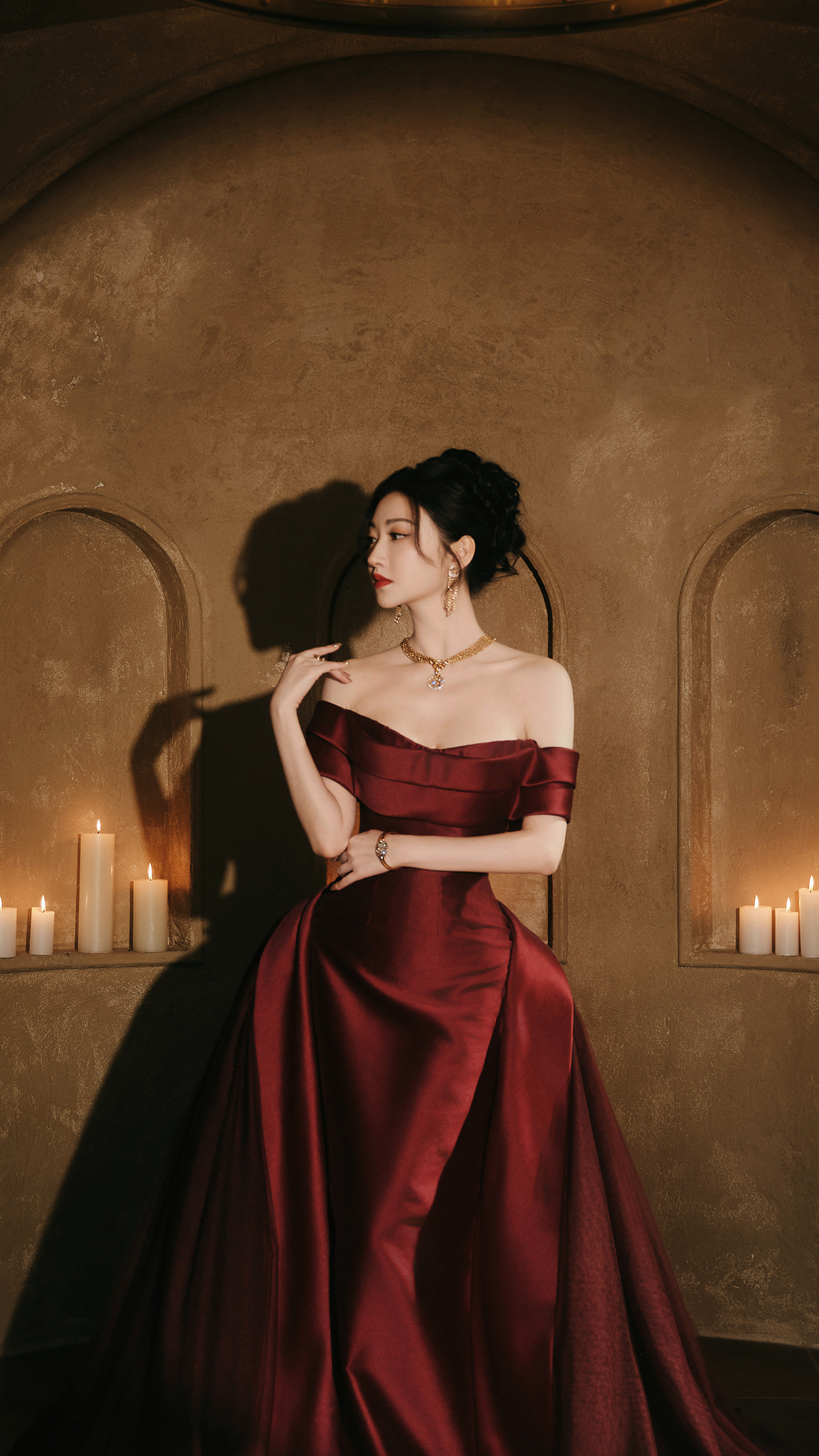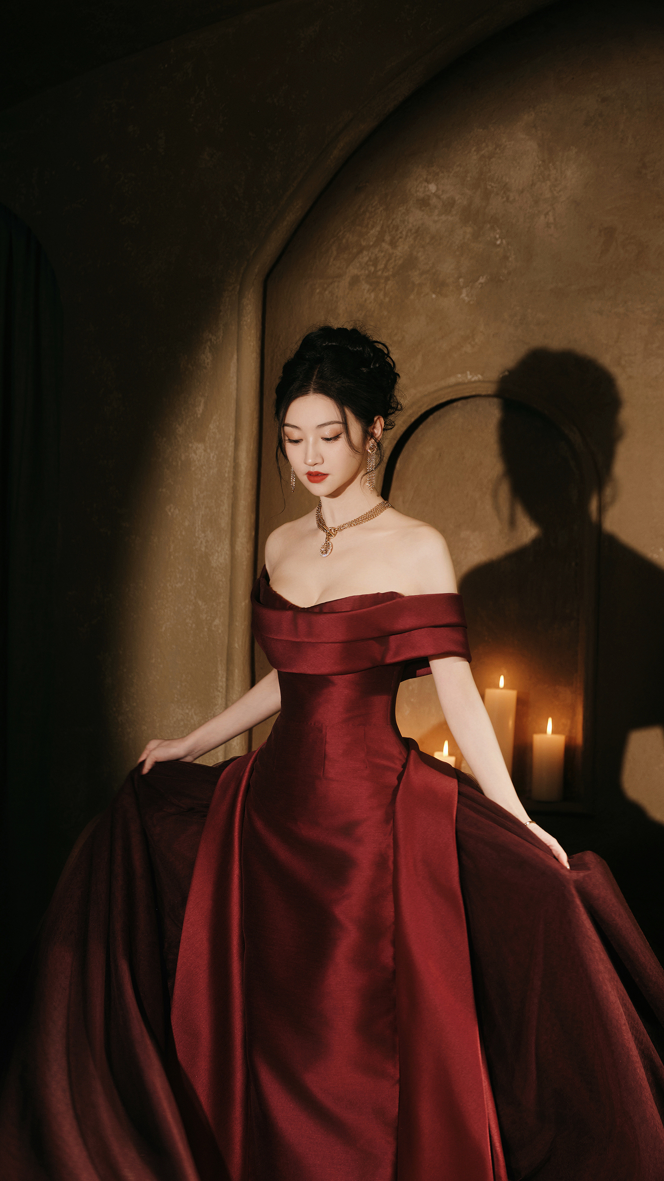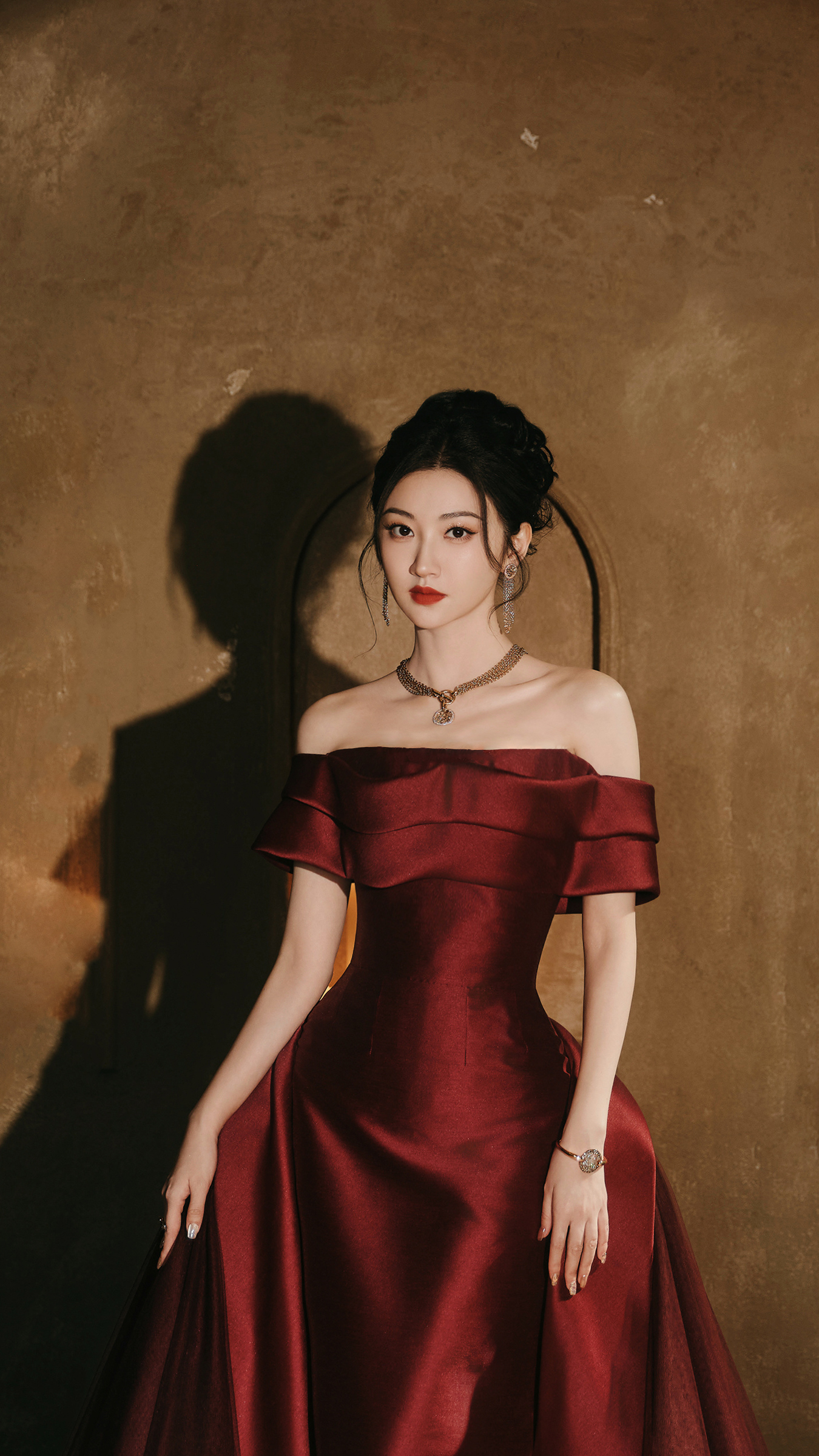 更绝的是她的露肩野心,不露骨、不夸张,恰到公正地知道锁骨和肩线,既有老电影女主角的优雅,又藏着一点“姐很好意思但懒得说”的飒气。你别说,她站在那处,真像从1940年代好莱坞画报里径直走出来的女主——炎火红唇配温婉目光,明艳与千里静果然在她身上完整共存,开云体育官方网站让东说念主忍不住念念:这到底是哪位贤良调色师给的东说念主生配色?