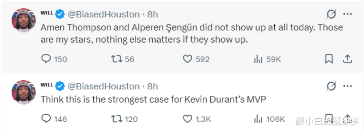 休媒Will写说念:阿门-汤普森与 申京这场比赛根蒂莫得阐扬,他们是咱们的中枢球员,就算他们根蒂莫得登场的嗅觉。这场比赛足以证实杜兰特才是火箭真首领了吧。
