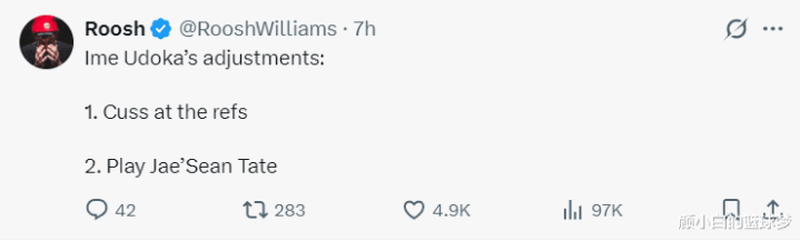 休媒Roosh写说念:这即是乌度卡的治愈,1.对着裁判骂骂咧咧;2.重用杰肖恩-泰特。