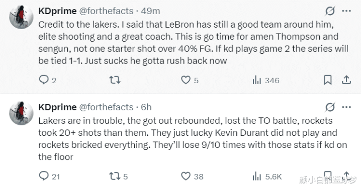 休媒:火箭队的篮板球比湖东说念主多20+,火箭队就输在莫得杜兰特,他们有太多叮嘱的投篮契机未能掷中,如若杜兰特能登场的话,湖东说念主十有八九会输球。